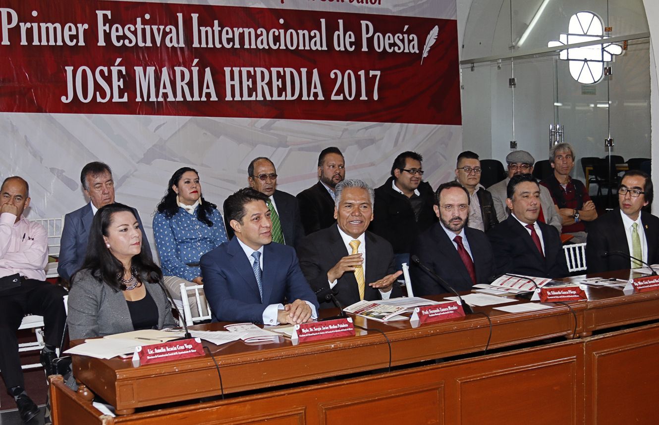 Con el reconocimiento de poetas e instituciones académicas, legislativas, judiciales y del servicio público, a la gran iniciativa del gobierno municipal, que encabeza Fernando Zamora Morales, para organizar el Primer Festival Internacional de Poesía José María Heredia 2017, se informó que todo se encuentra listo para recibir, del 28 al 30 de agosto, a 105 artistas de la lírica procedentes de 24 países.El alcalde resaltó que el festival es una iniciativa cultural internacionalista concebida y promovida por la administración de la capital, que valora el hecho de que los poemas de José María Heredia y Heredia hicieran visible a Toluca en el mapa mundial, convirtiéndola en la cuna del Romanticismo Latinoamericano.