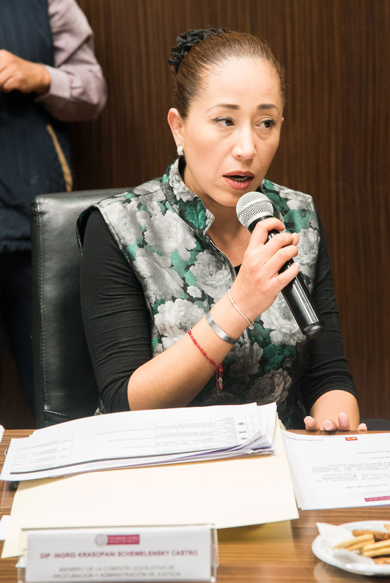 Por su parte, la legisladora Ingrid Krasopani Schemelensky Castro (PAN) propuso que la Comisión genere un punto de acuerdo que permita atender las necesidades derivadas del diagnóstico de las visitas realizadas en fiscalías regionales, centros de justicia y agencias del Ministerio Público.