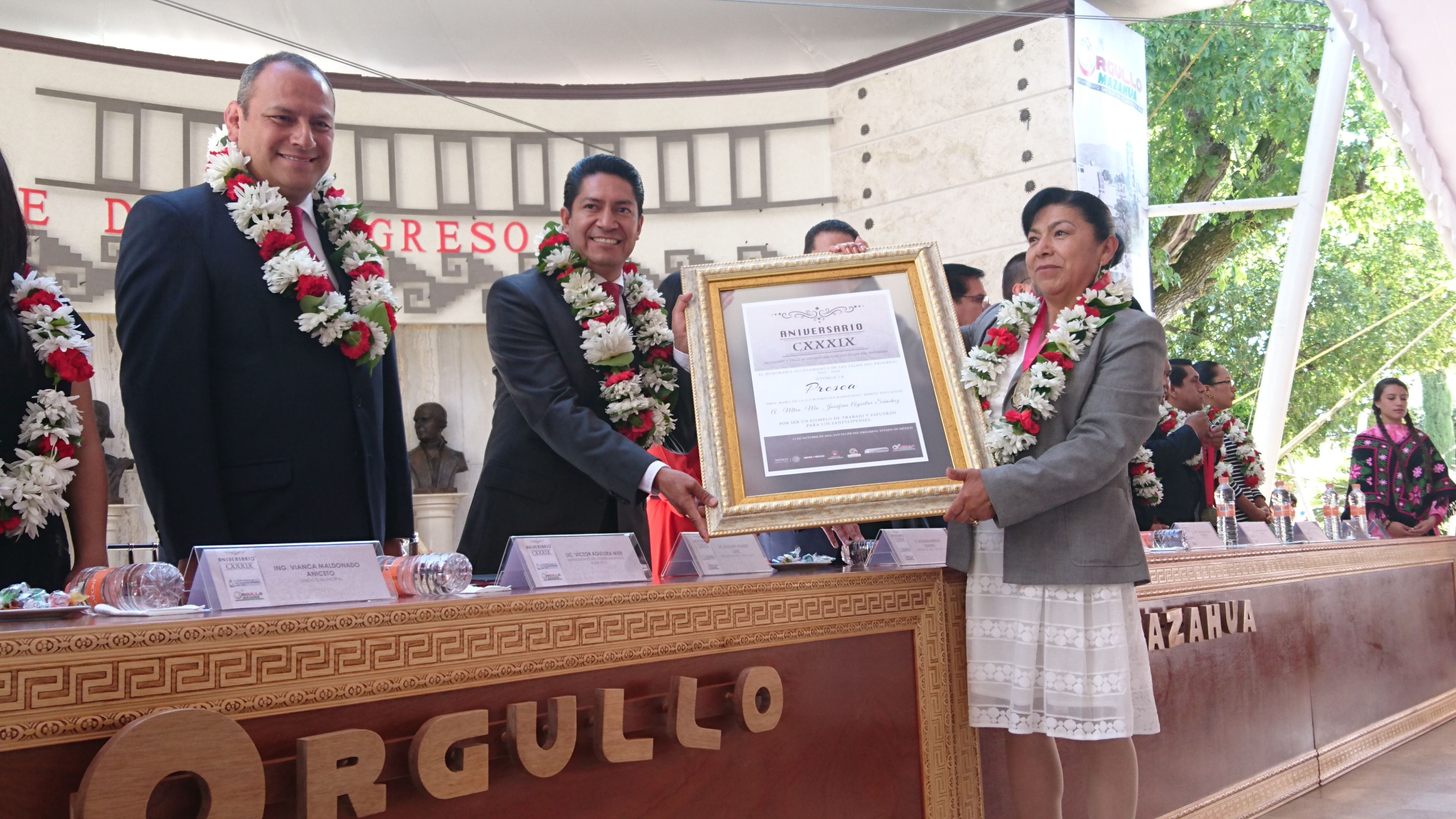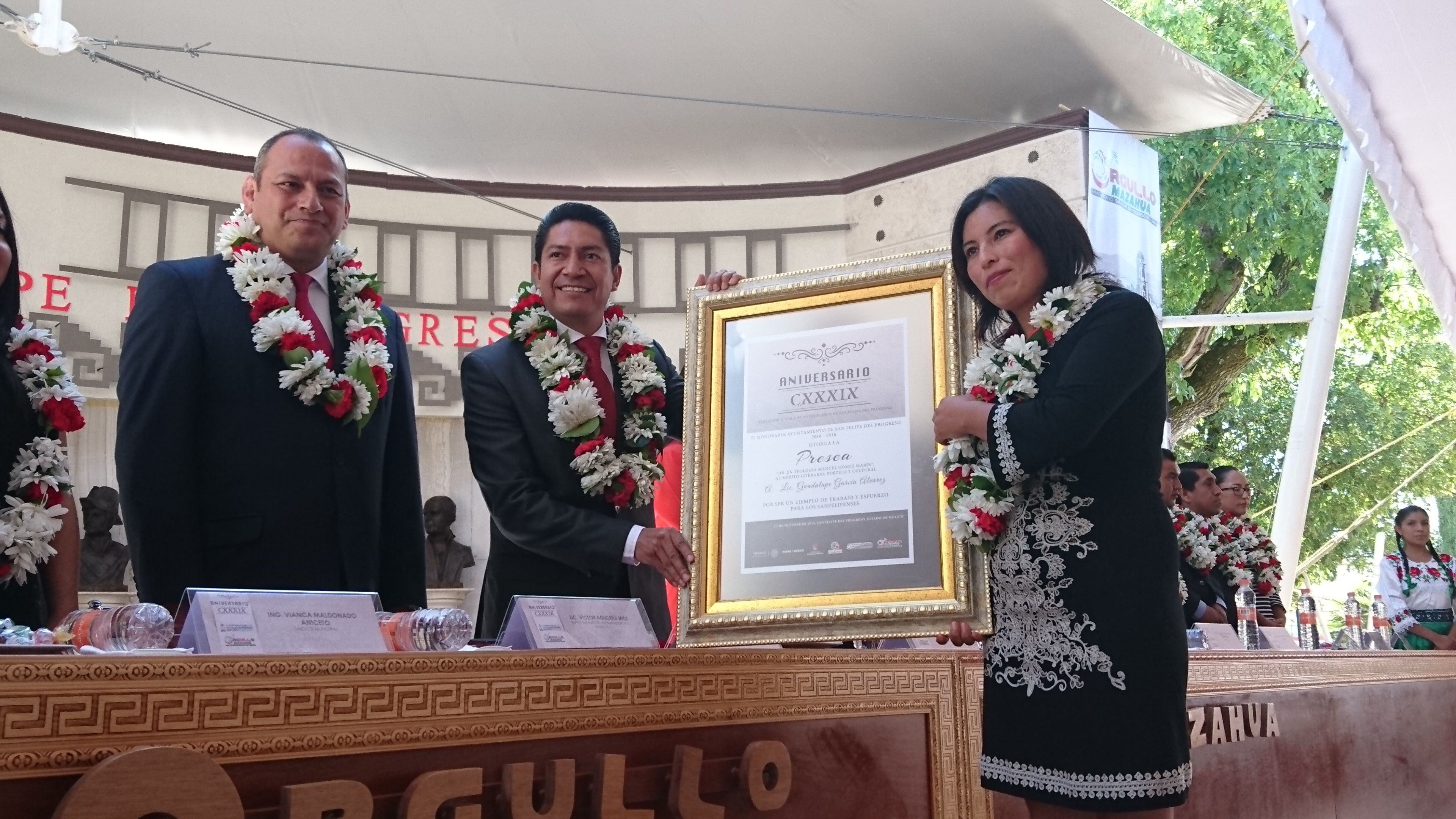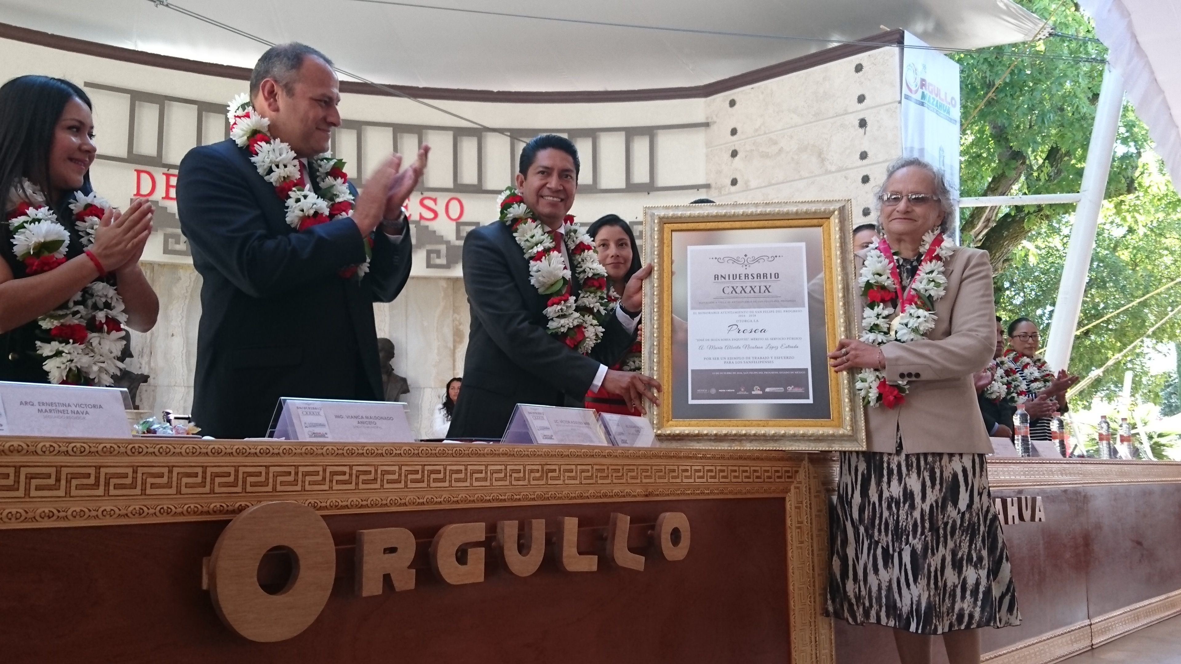 Los sanfelipenses estamos orgullosos de nuestra historia, pero más nos motiva y enorgullece el futuro que estamos construyendo día a día para nuestras familias, para nuestras comunidades, para nuestro municipio que hoy, hoy, está de fiesta, es su cumpleaños, festejémoslo todos con acciones dignas y reconocimiento a quienes han hecho de él un mejor municipio.Así lo señaló el presidente municipal de San Felipe del Progreso, Olegario Romero López durante la ceremonia del CXXXIX Aniversario de la elevación a villa de dicha municipalidad donde también se hicieron entrega de las preseas municipales a personajes e instituciones que han dado renombre a este lugar.