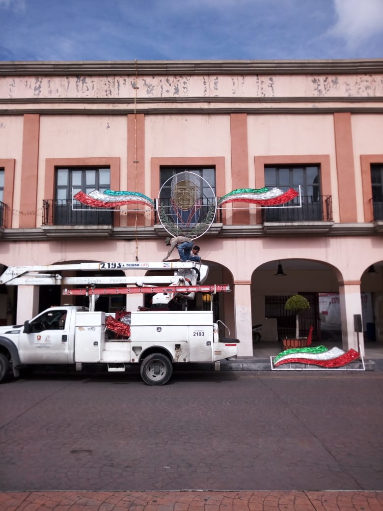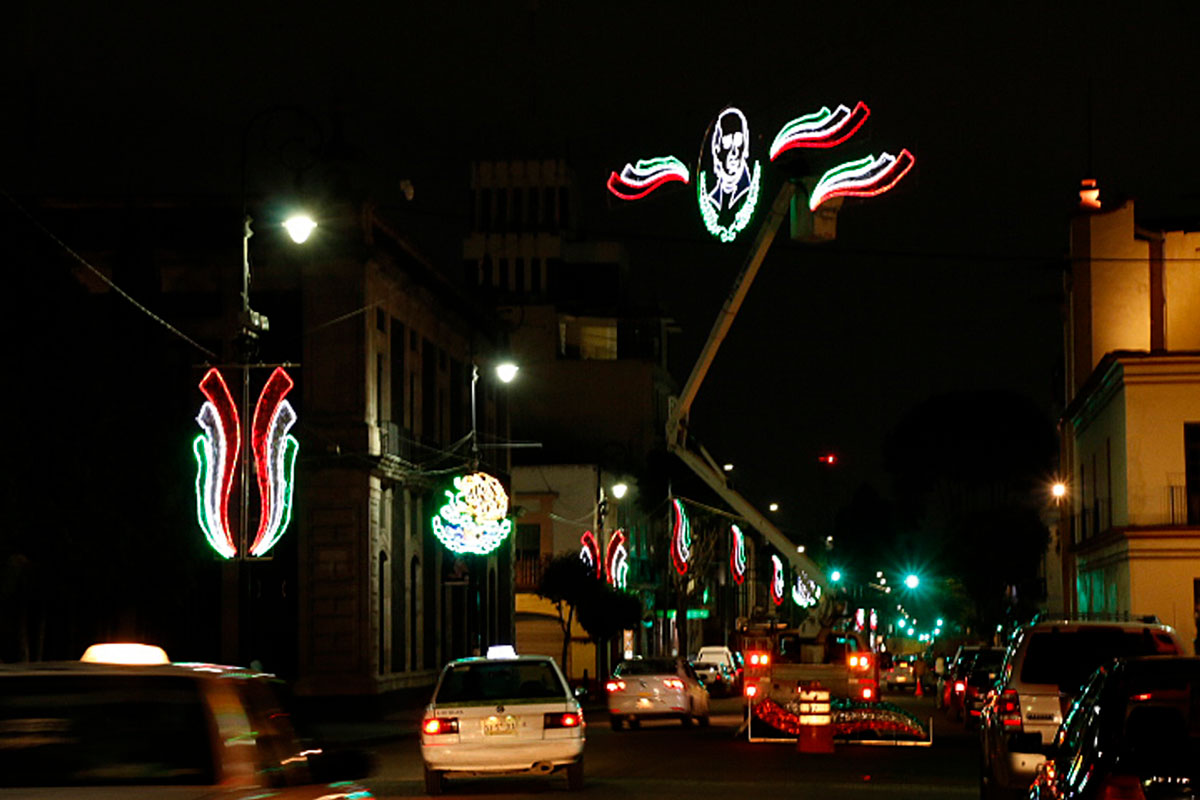 Cuadrillas de la Subdirección de Alumbrado Público han instalado los motivos mexicanos en las plazas González Arratia, de los Mártires y Ángel María Garibay, así como en el Parque Cuauhtémoc o Alameda Central, Andador Constitución y los Portales 5 de Febrero, Madero y Reforma, espacios públicos donde lucen figuras de banderas de balcón de diferentes tamaños, caudas y pendones tricolores que brillarán en la ciudad.