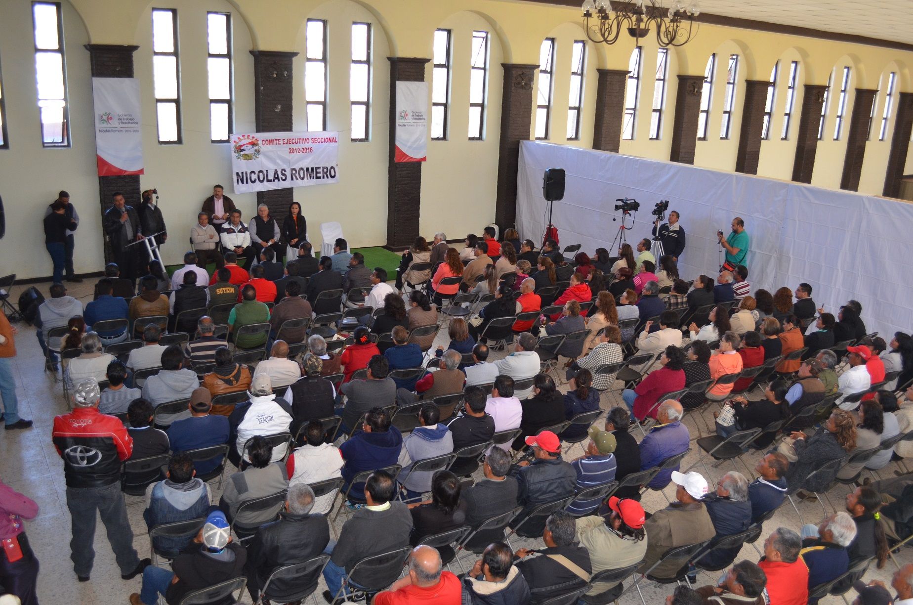 En la continuación de los recorridos para escuchar y atender a los agremiados, así como dar a conocer el programa “Sindicalismo de mano contigo”; el Lic. Herminio Cahue Calderón, secretario General del Sindicato Único de Trabajadores de los Poderes, Municipios e Instituciones Descentralizadas del Estado de México (SUTEYM), se reunió con los trabajadores de Nicolás Romero y con la presidenta municipal, Lic. Angelina Carreño Mijares. En esta reunión, el líder estatal del SUTEYM reconoció la disposición y trabajo de la alcaldesa, que se demuestran con las prestaciones al corriente y el interés por apoyar a los servidores públicos, con lo cual les da tranquilidad y estabilidad a los trabajadores y sus familias. Por ello, exhortó a los suteymistas a defender y respaldar los derechos ganados a través de una labor responsable, a erradicar los vicios y cumplir a cabalidad con sus obligaciones.