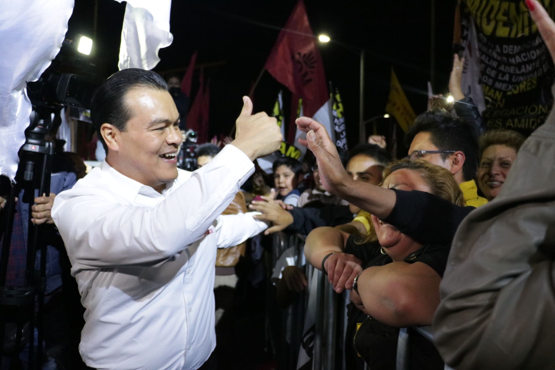 El ex alcalde de Neza, fue arropado por miles de vecinos quienes manifestaron su apoyo con gritos y porras para que el próximo 4 de junio, juntos, candidato y mexiquenses, jubilen al PRI del gobierno de la entidad.