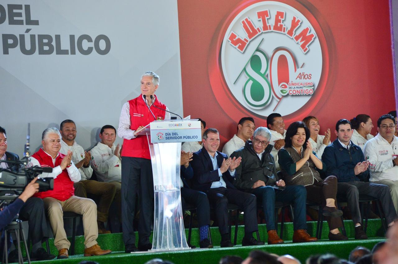 En el marco de la celebración del Día del Servidor Público y conmemoración del 80 aniversario del Suteym, Del Mazo Maza indicó que esta institución gremial se caracteriza por ser de las más fuertes a nivel nacional, por su unidad y la calidad del trabajo de las mujeres y hombres que la conforman.