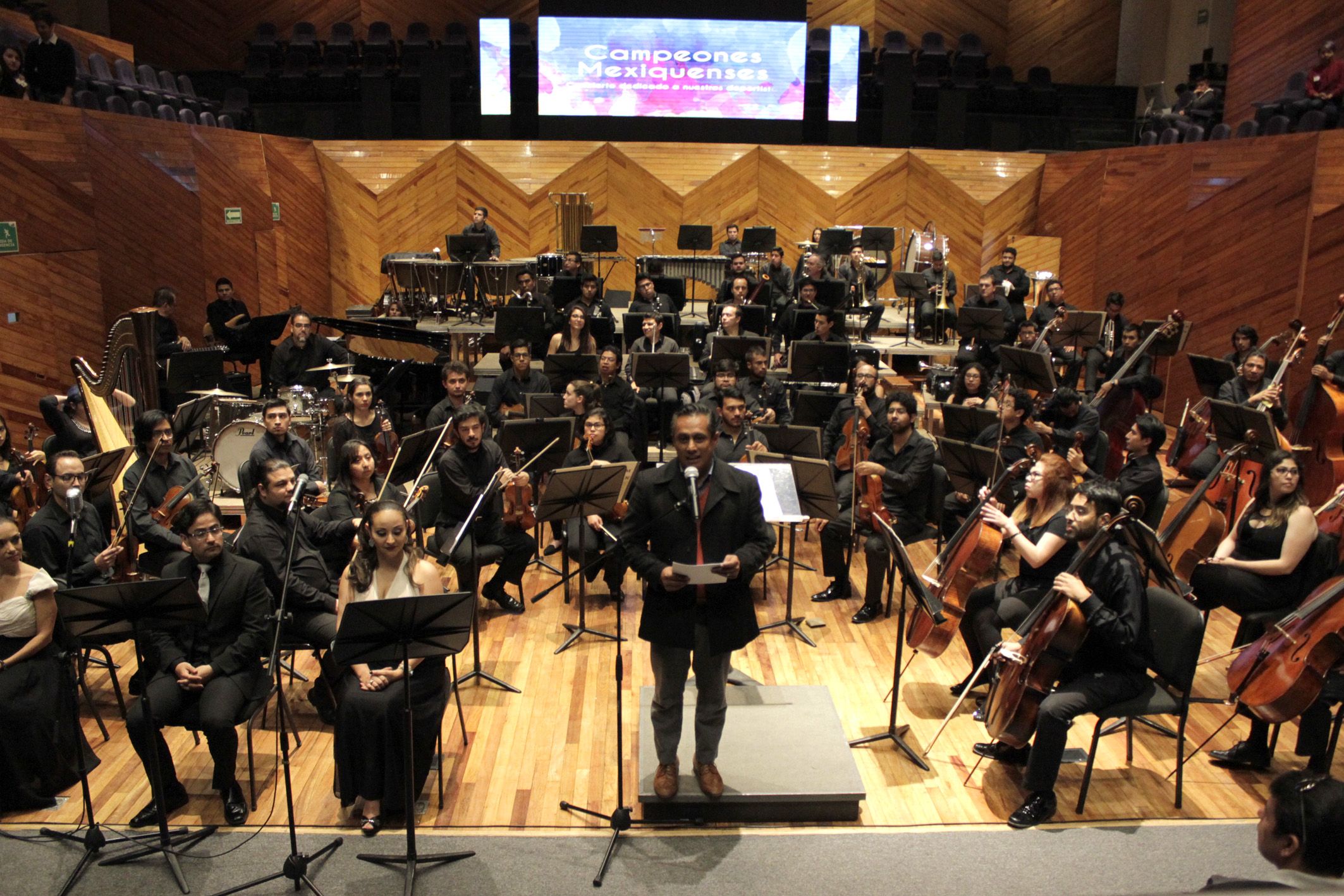 La Orquesta Sinfónica Mexiquense, bajo la batuta del maestro Rodrigo Macías, realizó el Concierto “Campeones Mexiquenses”, para rendir homenaje a los atletas mexiquenses que han puesto en alto el nombre de nuestra entidad en competencias nacionales e internacionales.