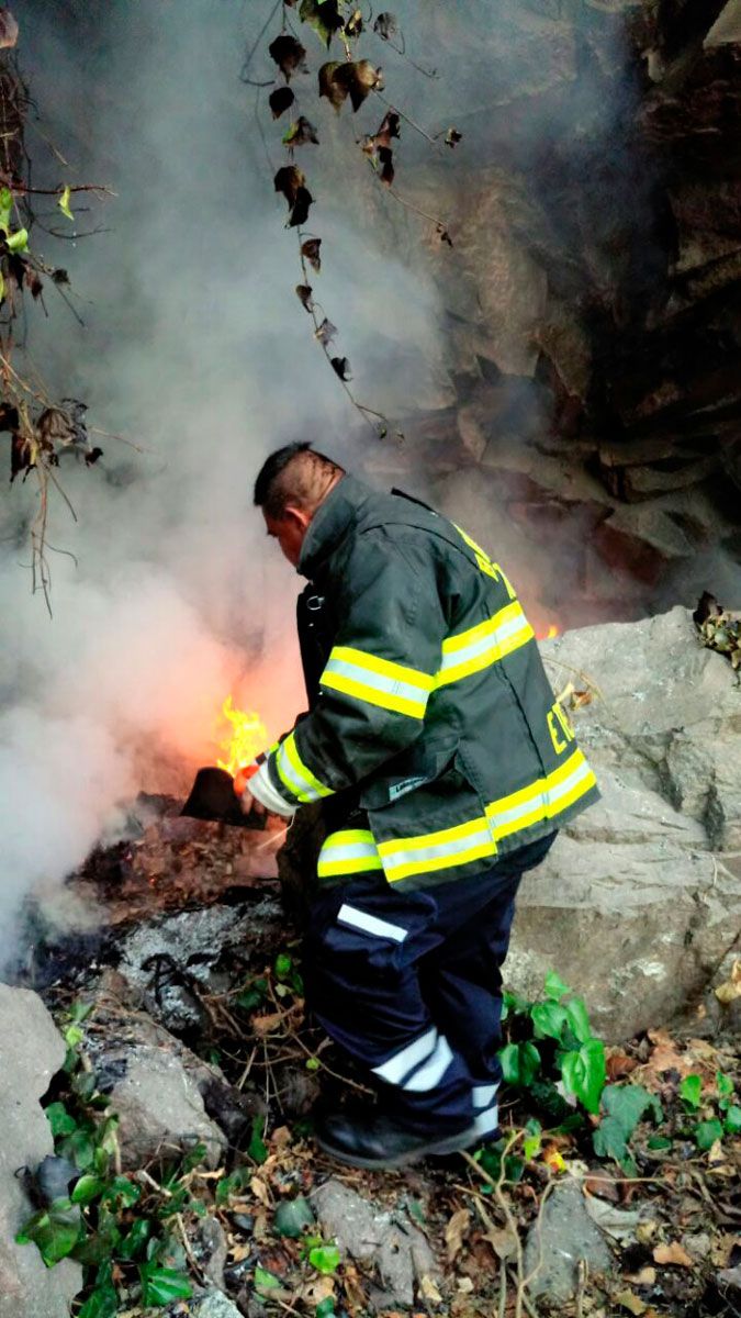 Toluca, Estado de México.- Elementos de la Subestación de Bomberos Norte sofocaron la tarde de este miércoles el fuego que se registró en una regular acumulación de hojarasca en la zona rocosa del Parque Matlatzincas El Calvario. Tras recibir una llamada de emergencia, tres elementos de la Coordinación de Protección Civil y Bomberos de Toluca, a bordo de la unidad ERI 06, se trasladaron de manera inmediata al lugar donde llevaron a cabo trabajos para el control y extinción de las llamas, sin que se registraran lesionados ni daños materiales.