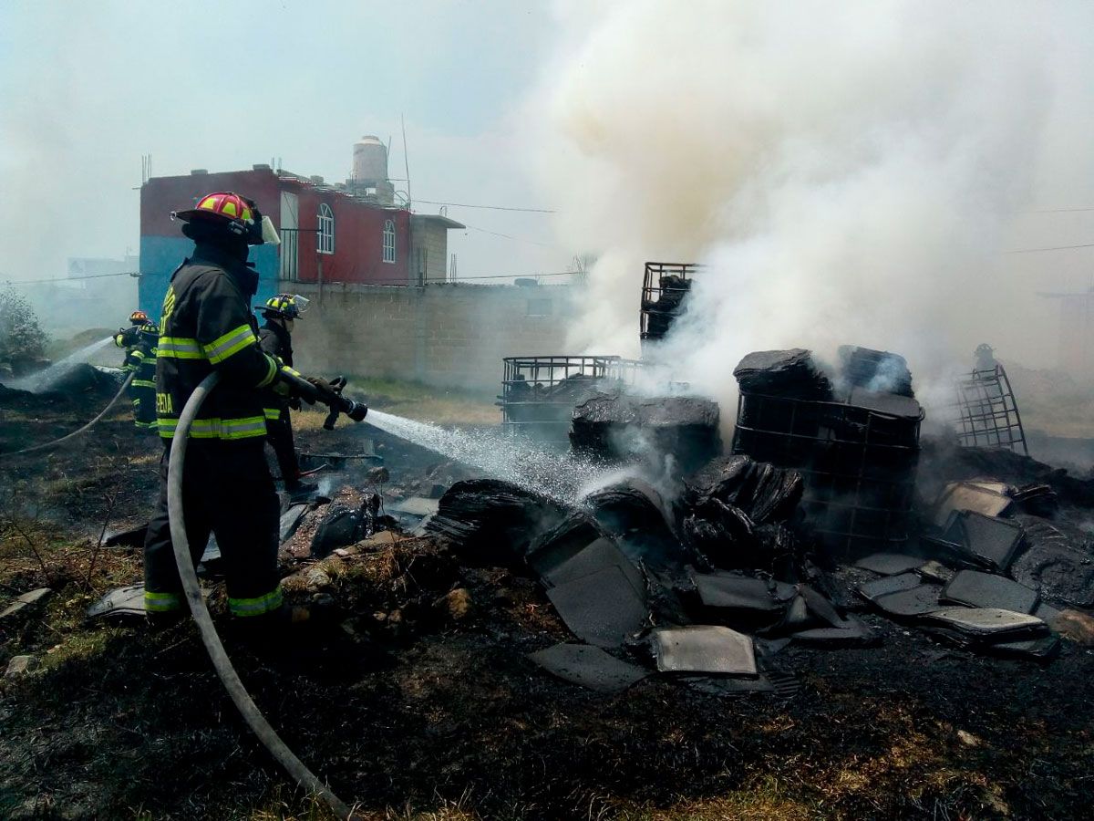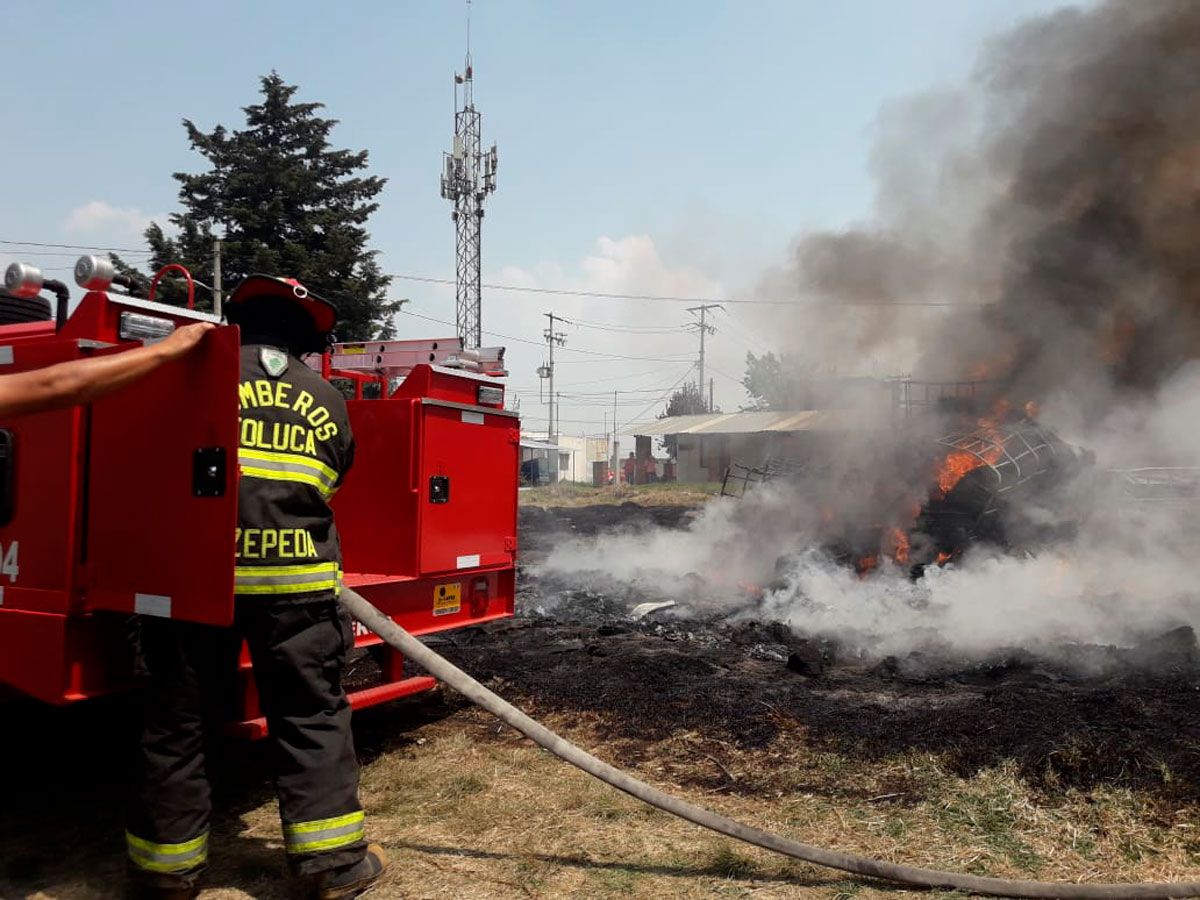 Toluca, Estado de México.- Elementos del H. Cuerpo de Bomberos sofocaron un incendio en la delegación de San Pedro Totoltepec, apoyados por personal de la Secretaria de la Defensa Nacional y efectivos de la policía municipal de Toluca, labores donde no se reportaron personas lesionadas y de acuerdo a las primeras indagatorias pudo originarse debido a una acumulación de desperdicio industrial.