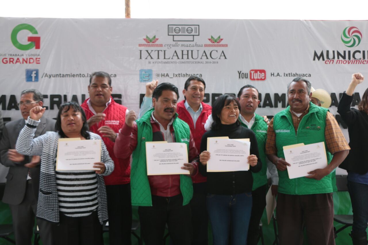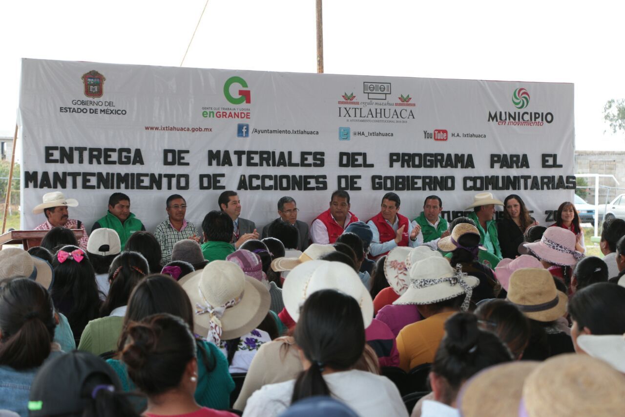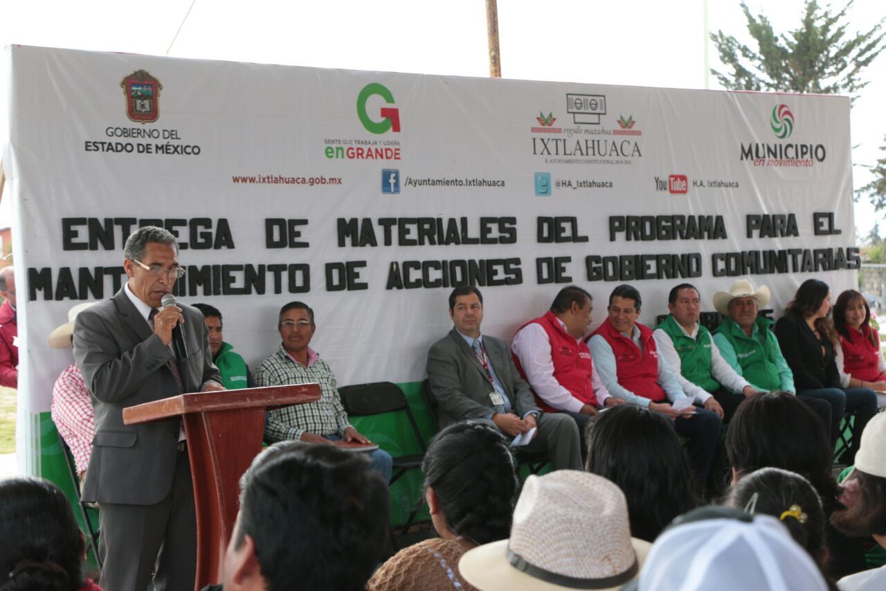 En el marco del Programa para el Mantenimiento de Acciones de Gobierno Comunitarias, el alcalde de Ixtlahuaca, Juan Carlos Bautista y el Representante del Gobernador en el Municipio, Dr. Felipe González Solano, entregaron materiales para beneficio de comunidades del municipio, el evento se realizó en el COBAEM de la Comunidad de San Cristóbal de los Baños.Bautista Santos remarcó que su interés es trabajar y trabajar fuertemente para responderle a la gente que deposito su confianza en esta administración, pues son los hechos los que convencen a la gente de que su gobierno está funcionando como ellos lo necesitan.