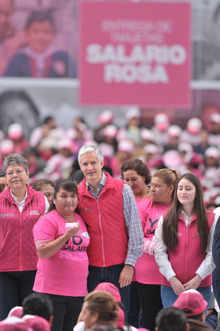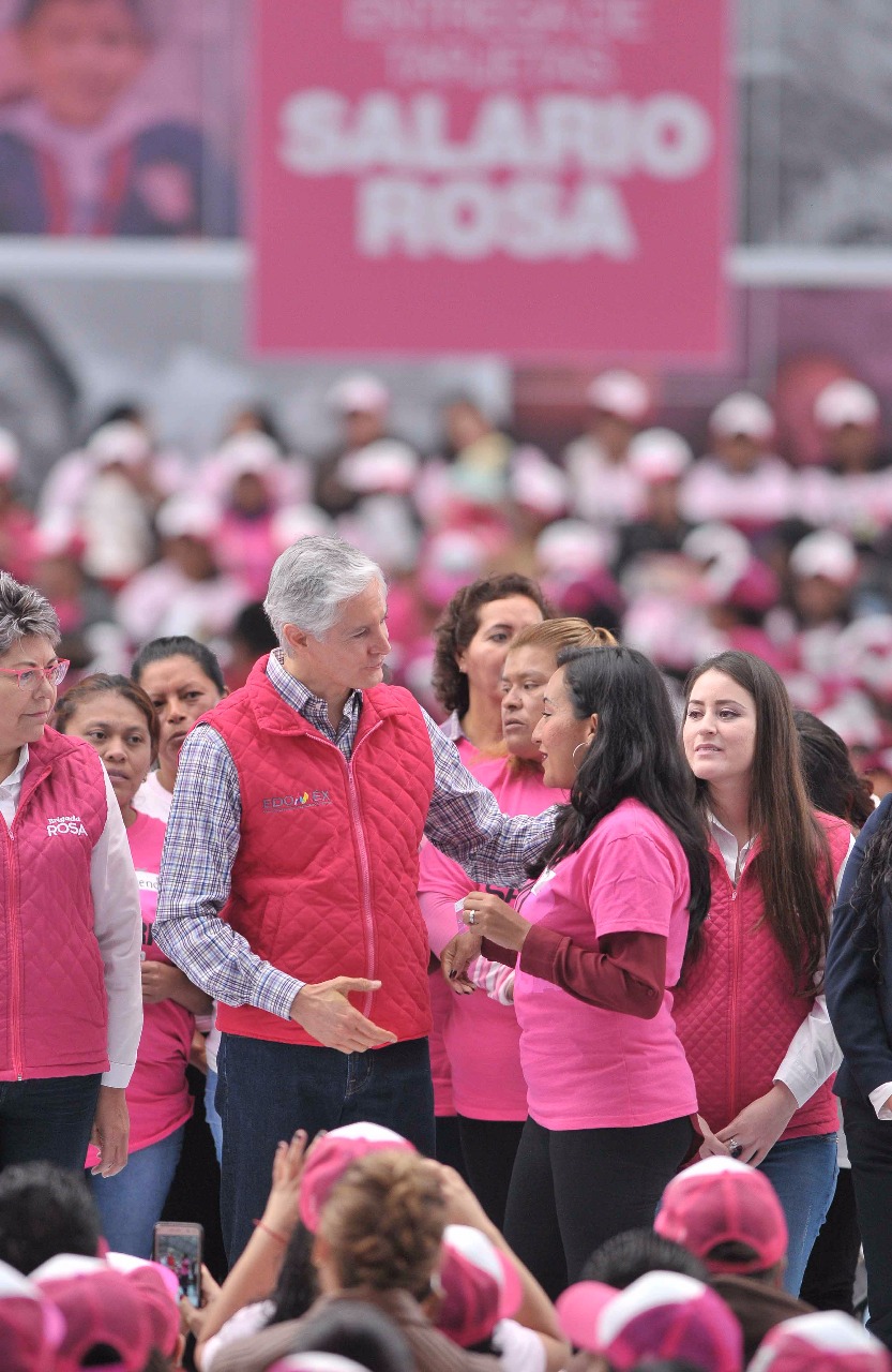 Asimismo, solicitó a las beneficiarias que se conviertan en voceras del Salario rosa y difundan entre sus conocidos que este programa es una realidad en el Estado de México y que empezó con las mujeres que más necesitan de estos recursos.