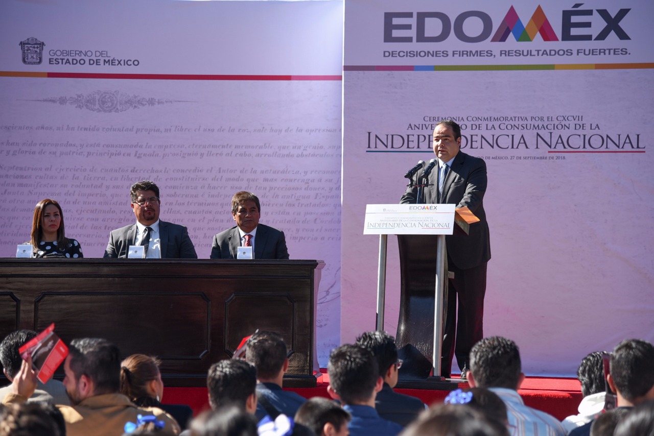Con la representación del Gobernador Alfredo Del Mazo Maza, el funcionario encabezó en Tenancingo la ceremonia por el 197 aniversario de la Consumación de la Independencia de México, donde hizo un llamado a trabajar en armonía por el desarrollo de la entidad y sus habitantes.