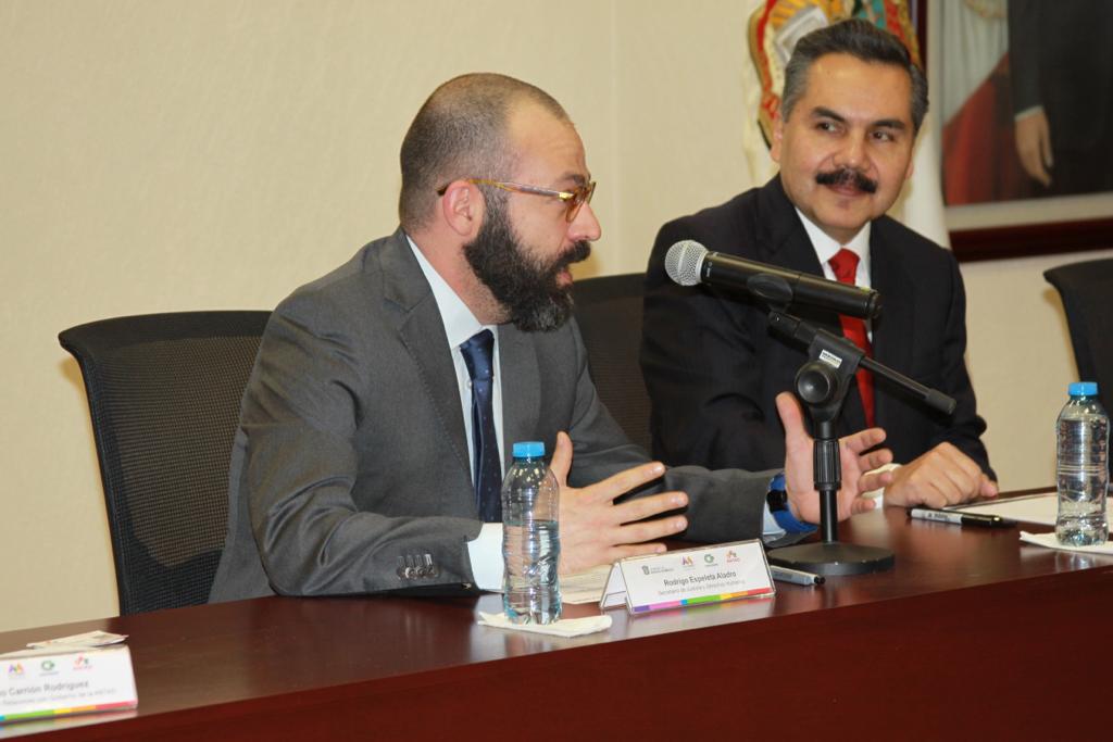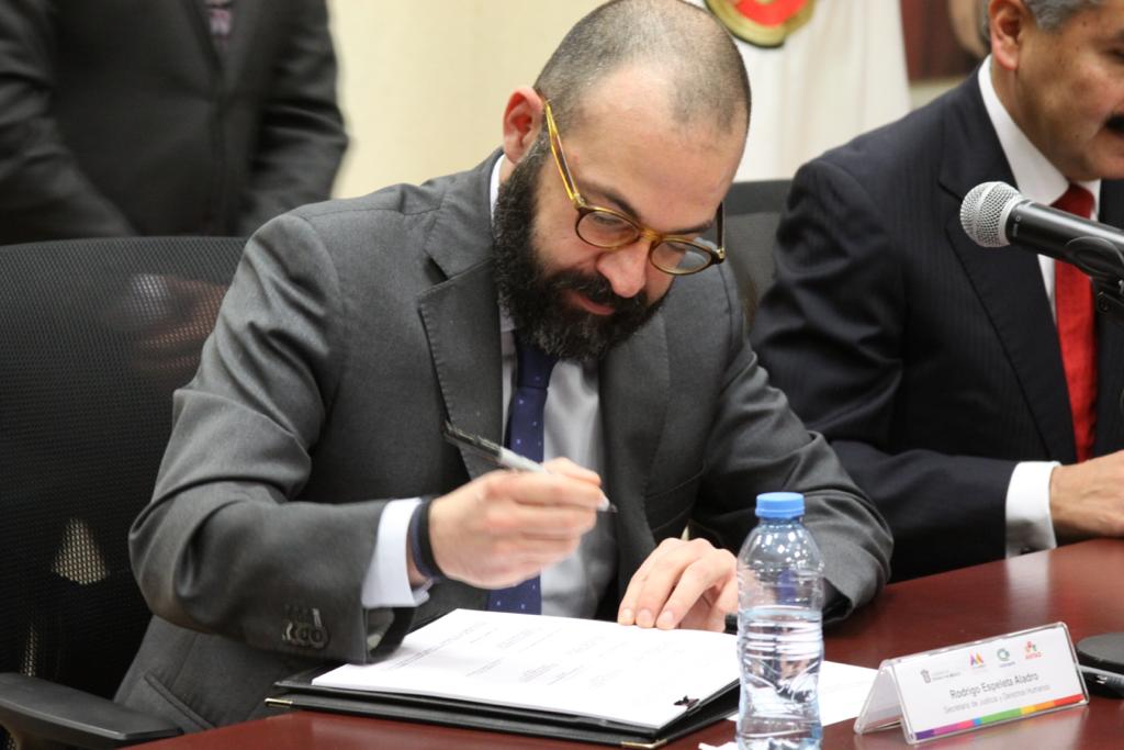 El Secretario de Justicia y Derechos Humanos, Rodrigo Espeleta, dijo que la firma de este convenio permitirá sumar esfuerzos para garantizar la aplicación de las leyes en materia de Mejora Regulatoria impulsadas por el Gobernador Alfredo Del Mazo.