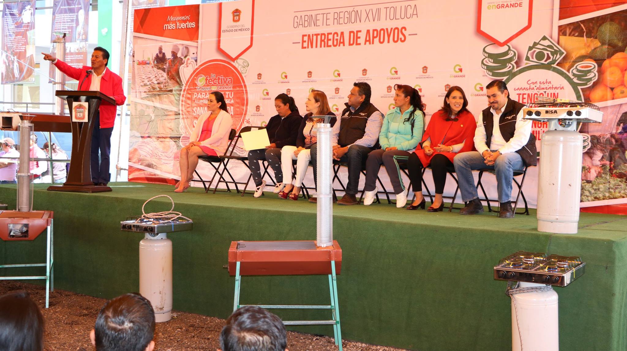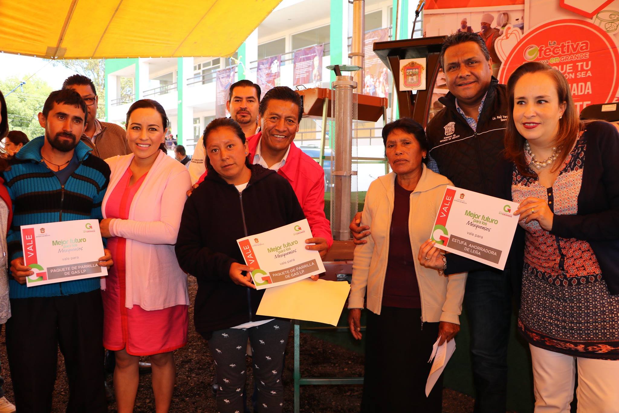 El presidente municipal de Zinacantepec, Manuel Castrejón Morales en coordinación con Raúl Vargas Herrera, secretario del Medio Ambiente del Estado de México y Carolina Alanís Moreno, directora general del DIF Estado de México y presidenta del gabinete regional XVII Toluca, entregaron mil 661estufas ecológicas favoreciendo a 21 comunidades, con la finalidad de apoyar a la economía y sobre todo a la salud de las familias zinacantepequenses.En el evento, el alcalde reconoció al señor gobernador Eruviel Ávila Villegas por su labor y preocupación en beneficio de las mujeres y hombres del Estado de México “Gracias al gobernador del Estado de México y la implementación de este tipo de programas <<estufas ecológicas>> continuamos atendiendo integralmente los rezagos que se viven en las viviendas; el desarrollo de Zinacantepec tiene un rumbo e identidad que nos une, la visión de tener viviendas con mejores condiciones de vida y seguir logrando más, estamos orientando todo nuestro esfuerzo, entrega y voluntad por quienes más lo necesitan” apuntó.