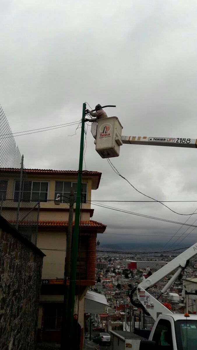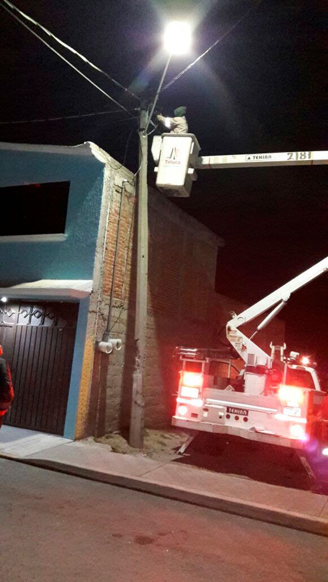 Toluca, Estado de México.- Como parte de las acciones que emprende el gobierno municipal de Toluca para prevenir y erradicar la violencia contra las mujeres y las niñas, la Subdirección de Alumbrado Público llevó a cabo la rehabilitación y mantenimiento de poco más de 40 luminarias en colonias de 10 delegaciones de la capital.