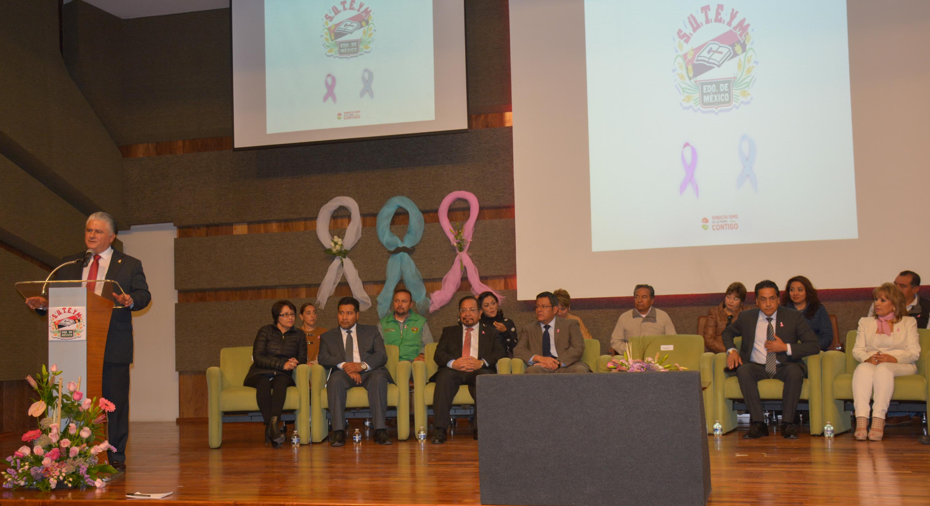 El Foro “Teniente Sebastián Cruz Arámbula Sánchez”, fue sede del ciclo de conferencias informativas de distintos tipos de cáncer; actividad que realizó el SUTEYM, de manera conjunta con el Instituto de Seguridad Social del Estado de México y Municipios (ISSEMyM), para más de 600 sindicalizados de ayuntamientos, organismos descentralizados y sector central.En la inauguración, el Lic. Herminio Cahue Calderón, Secretario General del SUTEYM, señaló que el cuidado de la salud debe ser permanente, pues el amor que le tienen a sus seres queridos, también se manifiesta a través del autocuidado. Por ello, los exhortó a compartir la información con sus familias y compañeros de trabajo, para promover y fomentar una cultura de medicina preventiva.