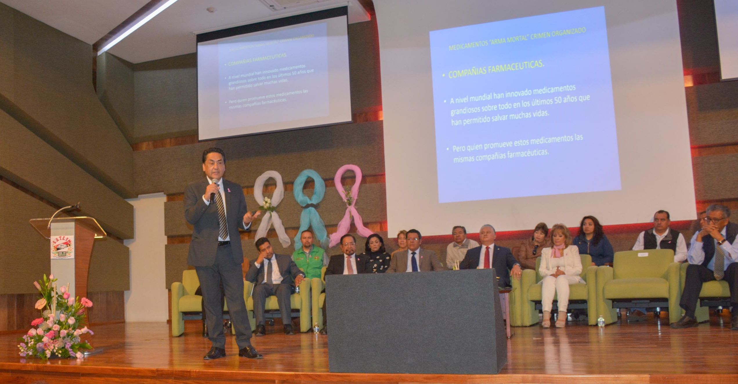 El Dr. José Luis Téllez Becerra, Director General del ISSEMyM, participó con las ponencias “Medicinas, arma mortal” y “Cáncer Pulmonar”; el Dr. José Luis Barrera Franco, Director del Centro Oncológico del instituto, y diversos especialistas abordaron los temas de: “Cáncer como problema de Salud”, “Introducción, Diagnóstico y Manejo del Cáncer de Próstata”, “Manejo y Prevención del Cáncer de Mama” e “Imagen Radiológica del Cáncer de Mama”.