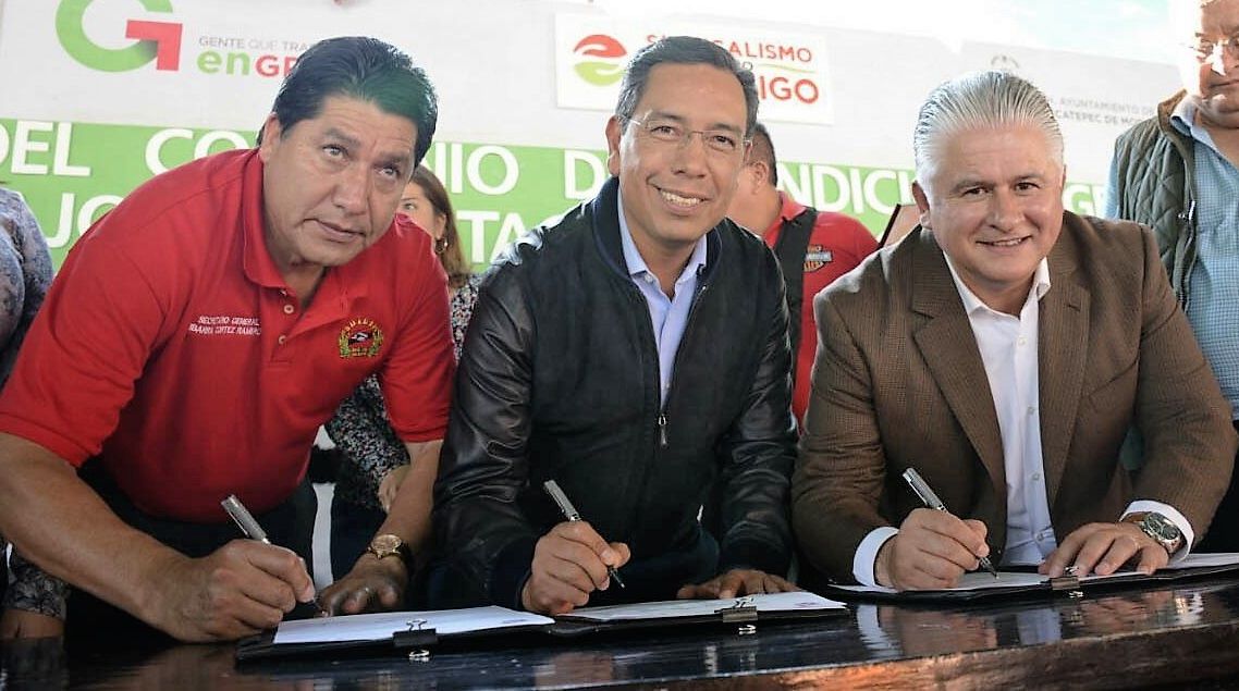 En los cimientos del Centro Cultural y Recreativo del SUTEYM en Ecatepec, se realizó la firma del documento que establece la relación contractual entre la administración y los trabajadores, la cual representó un aumento salarial directo del 8 por ciento para los 4,300 sindicalizados adscritos al ayuntamiento, SAPASE y DIF.