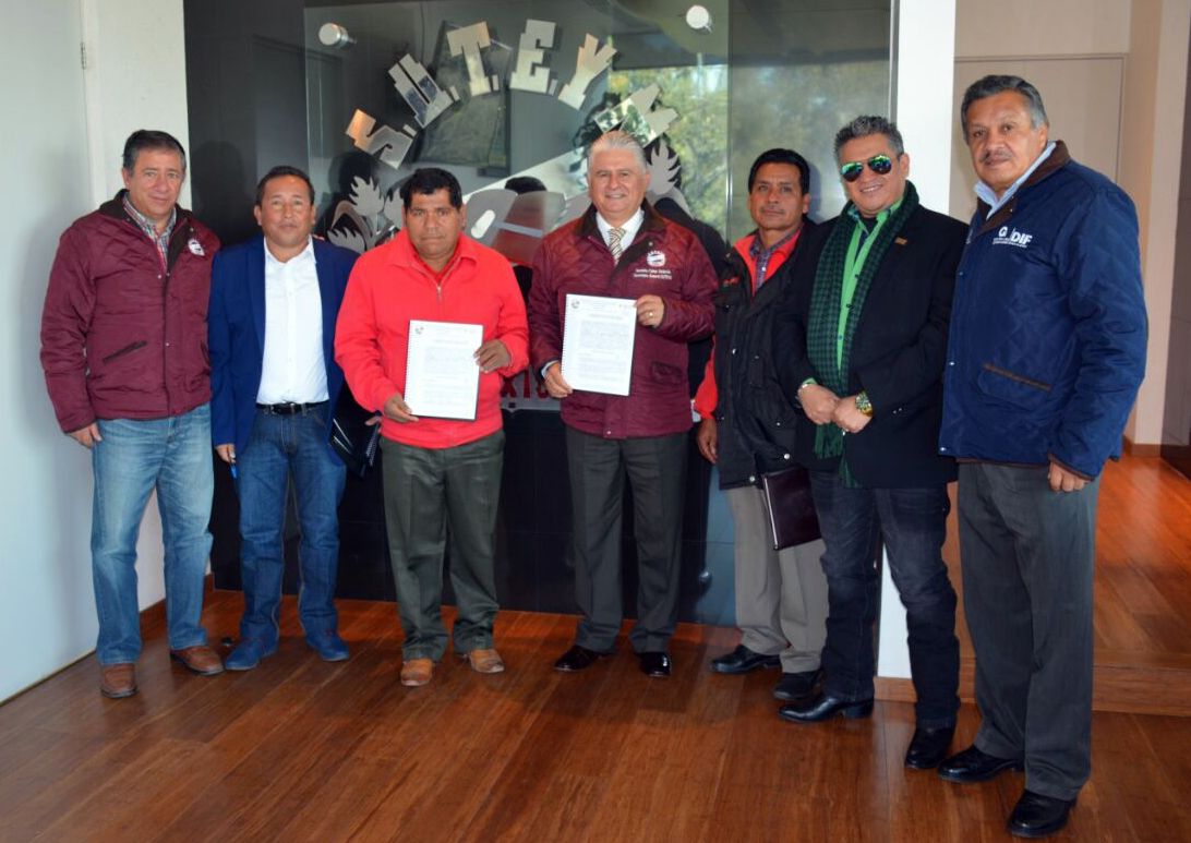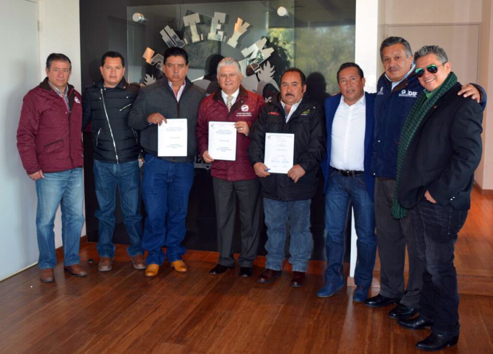 El Secretario General del SUTEYM, Lic. Herminio Cahue Calderón, firmó los primeros Convenios de Sueldo y Prestaciones Socioeconómicas 2017 con algunos ayuntamientos del Valle de Toluca. Fue en la Casa del Servidor Público Mexiquense donde se signaron estos acuerdos con los municipios de San Martín Otzoloapan, San Simón de Guerrero, y Santo Tomás; en días anteriores se suscribió también este acuerdo con Tlatlaya. Más de 100 trabajadores se verán beneficiados con este documento, que garantiza la estabilidad laboral y el sustento económico para sus familias. A esta firma acudieron: Santos Cabrera Cruz y Ruperto Mora López, alcaldes de Otzoloapan y de San Simón de Guerrero, respectivamente; Juan José Tenorio Domínguez, Tesorero y representante de la Alcaldesa de Santo Tomas, Clotilde García Enríquez; autoridades municipales, y miembros del Comité Ejecutivo Estatal.