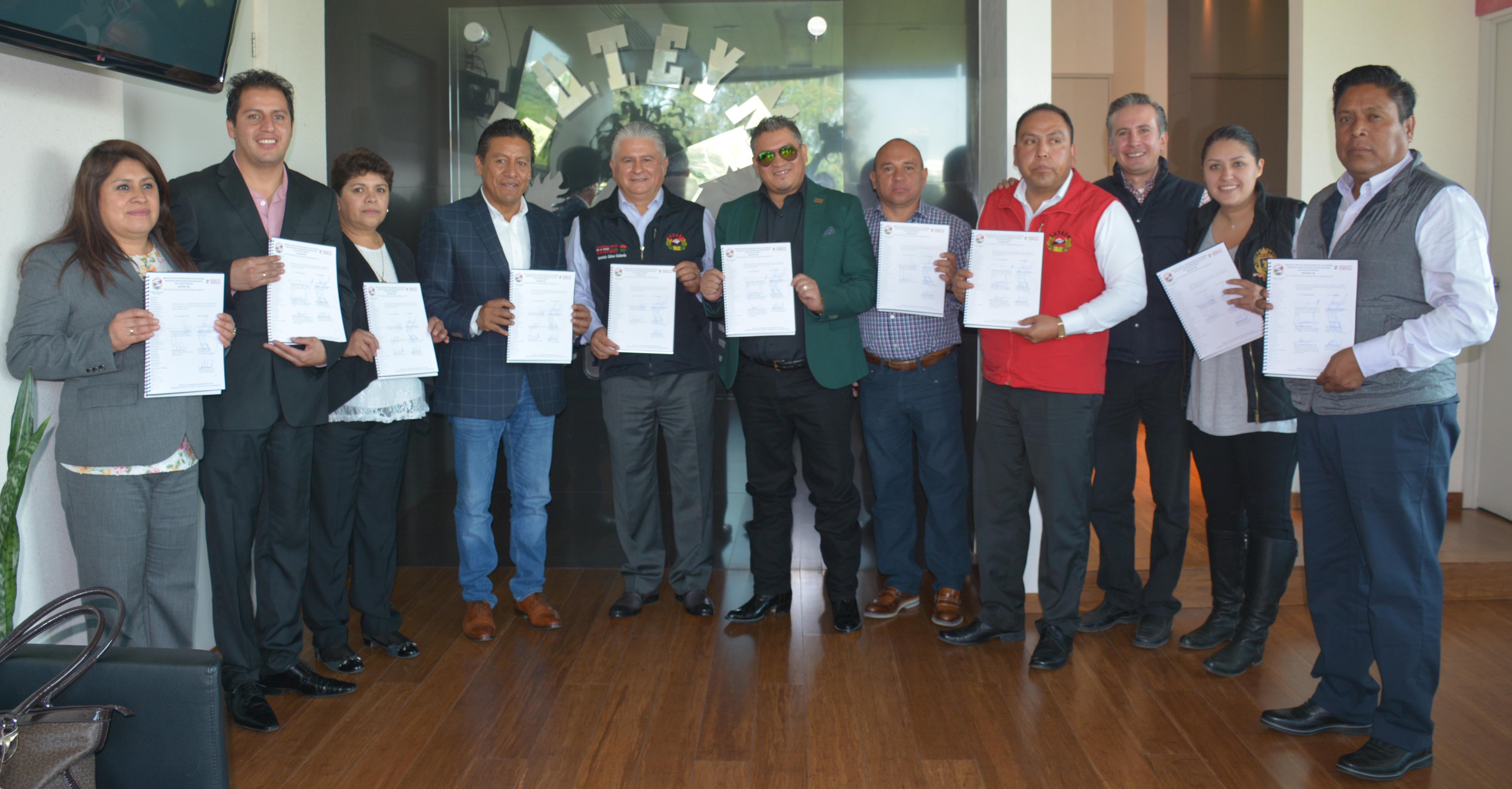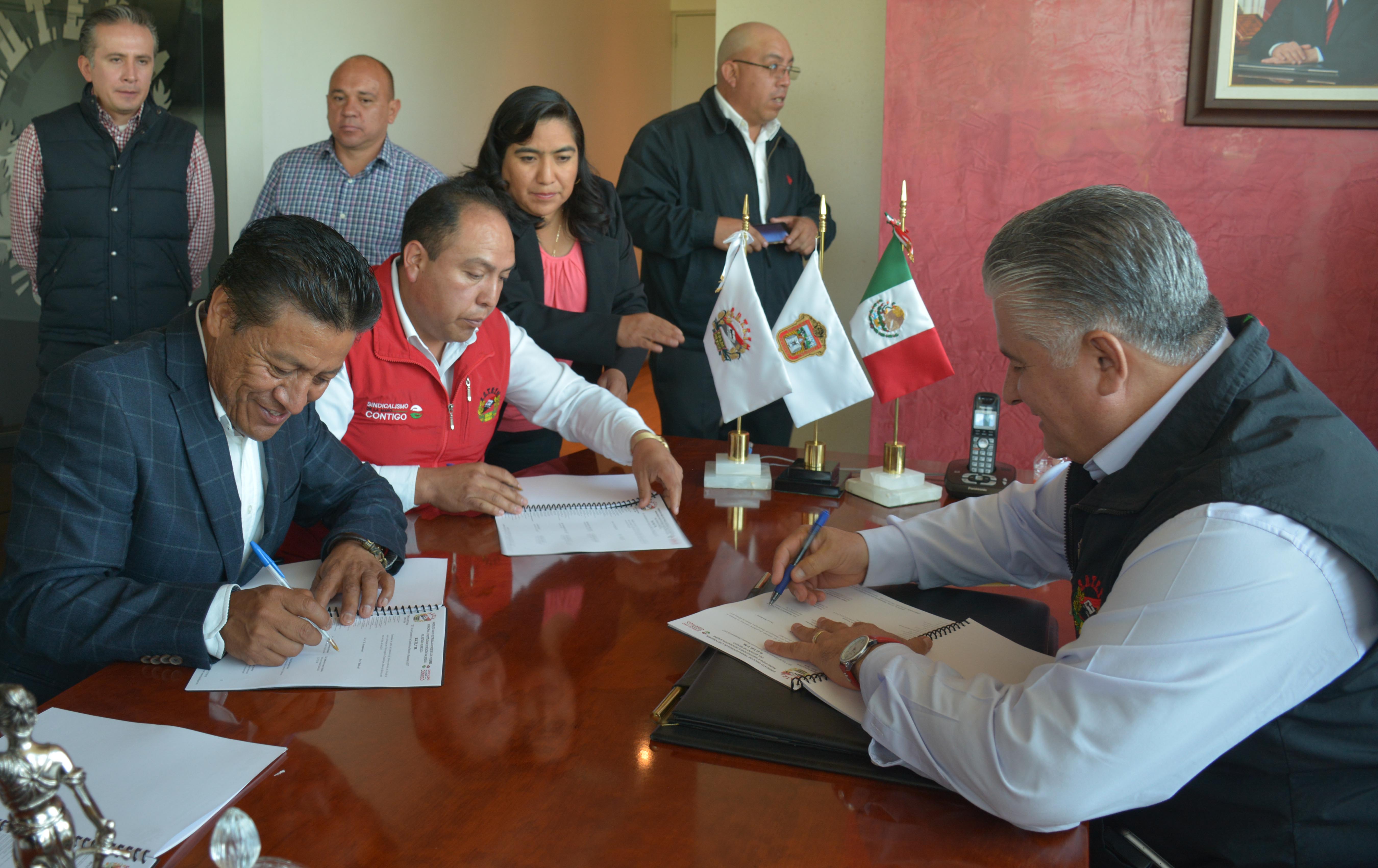 El Secretario General del SUTEYM, Lic. Herminio Cahue Calderón, recibió en la Casa del Servidor Público Mexiquense al Presidente Municipal Constitucional de Zinacantepec, Marcos Manuel Castrejón Morales, a autoridades municipales y a la sección sindical, para llevar a cabo la firma de Convenio de Sueldo y Prestaciones socioeconómicas 2017, que favorecerá a más de 200 trabajadores, y sus respectivas familias. Gracias a la relación del sindicato y el ayuntamiento, basada en el diálogo y trabajo responsable, se logró un incremento escalonado con límite al 12%; el mayor porcentaje beneficiará a los suteymistas que perciben un menor salario.