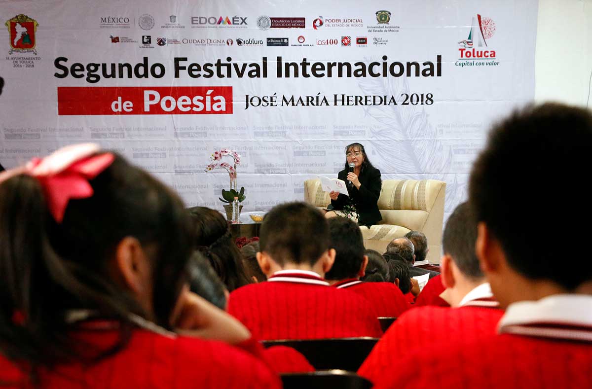 Ante el representante del gobierno estatal, Sotero López Molina, y en nombre de la comunidad escolar la directora Teodora García González aplaudió la iniciativa de la administración local, que confirma que Toluca es una capital con valor cultural, marco en que agradeció porque su escuela fue una de las privilegiadas para recibir a poetas del mundo que leyeron de viva voz su obra.