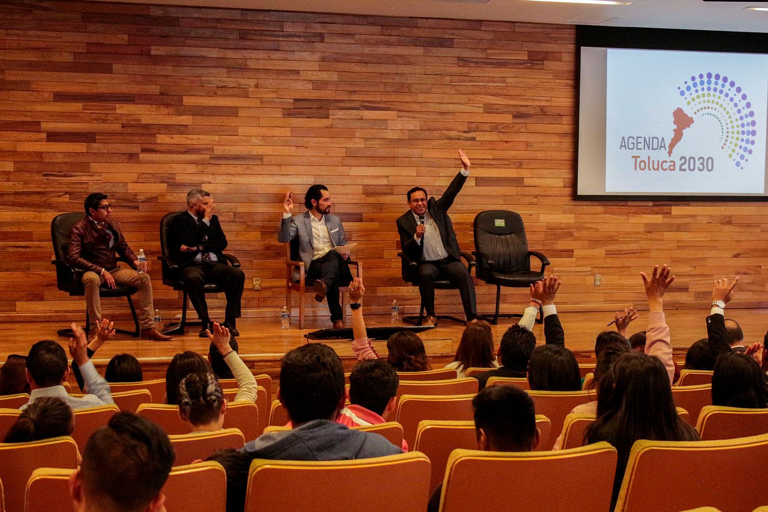 Toluca, Estado de México.- Con la temática “Toluca Sostenible” se desarrolló el séptimo y último foro para el cumplimiento en la Agenda 2030 organizado por la administración municipal, a través de la Segunda Sindicatura, marco en que especialistas abordaron los Objetivos de Desarrollo Sostenible 9, 10 y 11 referentes a la innovación, reducción de desigualdades y ciudades sostenibles, evento realizado en el auditorio del Museo Torres Bicentenario.