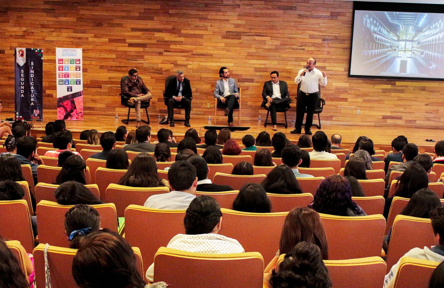 En esta ocasión se contó con la participación de Rafael Fernando Barreto, representante del Centro de Estudios e Investigación en Desarrollo Sustentable de la Universidad Autónoma del Estado de México; Moisés Bernal Canuto, consultor en temas de Desarrollo Urbano y Regional del sector público; David Pérez Castillo, representante de la sociedad civil organizada y presidente de Negocios Verdes A.C, así como de Isaac Hilu Alfille, representante del sector privado y dueño del Complejo Box Park, expertos que compartieron sus experiencias en materia de desarrollo tecnológico y sustentable.