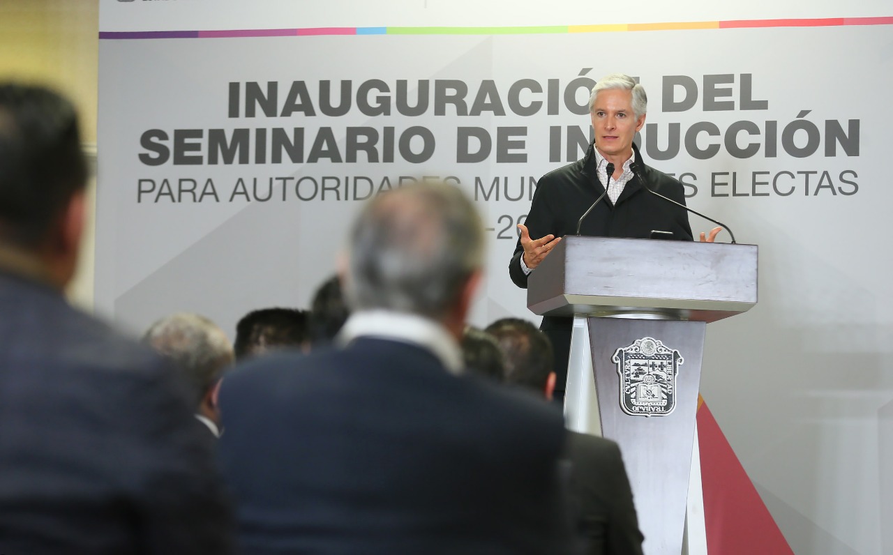El Gobernador Alfredo Del Mazo manifestó que el Seminario de Inducción para Autoridades Municipales Electas permite a las nuevas administraciones municipales acercarse a herramientas que pueden utilizar para ir planeando proyectos que podrán realizar una vez que inicien su gestión gubernamental.