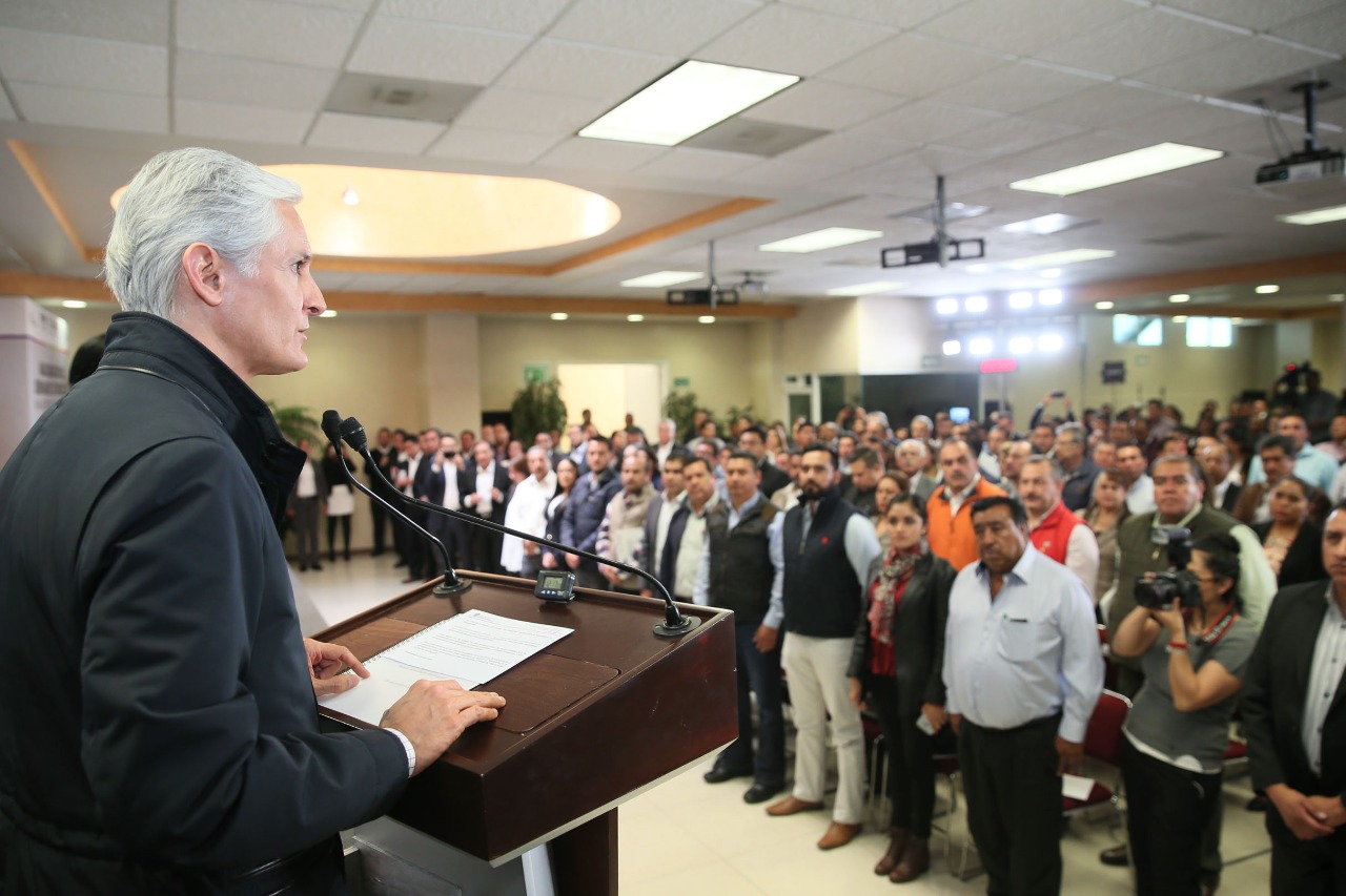 Alfredo Del Mazo puntualizó que para generar desarrollo económico y empleo, un punto importante es la atracción de inversiones, por lo que invitó a las próximas autoridades municipales a trabajar de manera articulada en la tramitología para agilizar los procesos de apertura de empresas.
