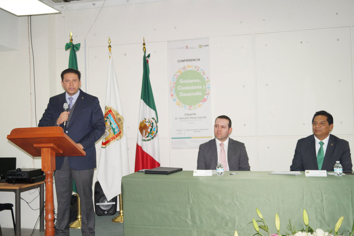 Sin participación ciudadana no será posible consolidar la democracia ni el desarrollo sostenible en nuestro Estado ni en nuestro país, manifestó el Dr. Ranulfo Pérez Garcés, en el marco de la conferencia “Gobierno, ciudadanía y desarrollo”, la cual dictó en la Unidad Académica Profesional Acolman de la Universidad Autónoma del Estado de México, y organizada en coordinación con la Secretaría Técnica de la Universidad y con la Subsecretaría de Desarrollo Político del Gobierno del Estado de México.