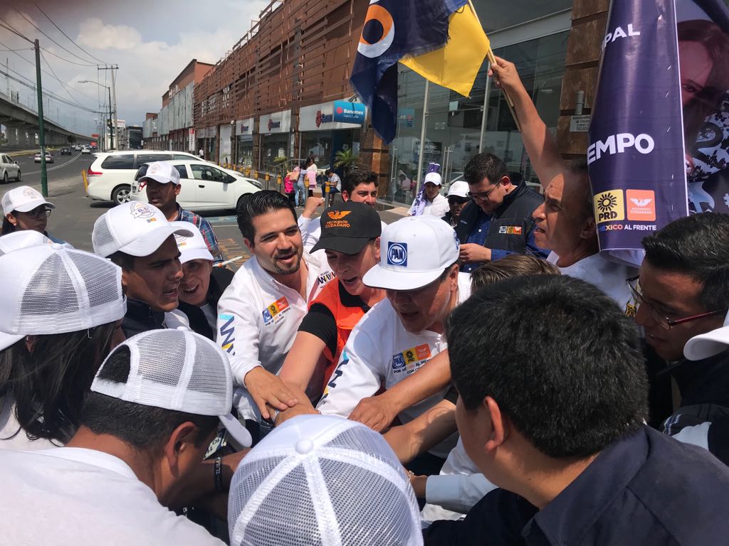 Con mucho ánimo, corazón y vida la comitiva recorrió las principales avenidas de Metepec, como Las Torres, en las que se entregó con volantes las propuestas de gobierno municipal de Quijada y legislativas de Magdaleno.
