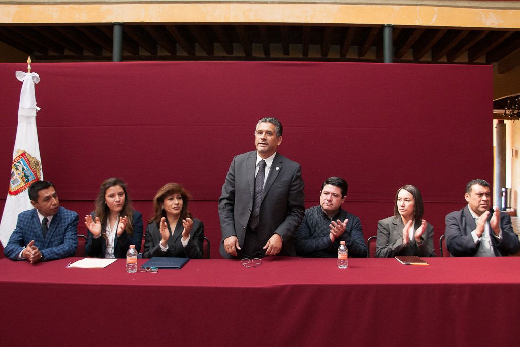 Los diputados juveniles, Alicia Janeth Ramón Sánchez, Melissa González Fuentes, Ricardo Díaz Esquivel, Sebastián Mendoza Vázquez, Fernanda Téllez Romero y Enya Larissa Cruz Morales rindieron protesta como coordinadores parlamentarios del PRI, PRD, PAN, Morena, Nueva Alianza y Verde Ecologista, respectivamente, quienes, a su vez, tomaron protesta a los integrantes de sus respectivas bancadas.