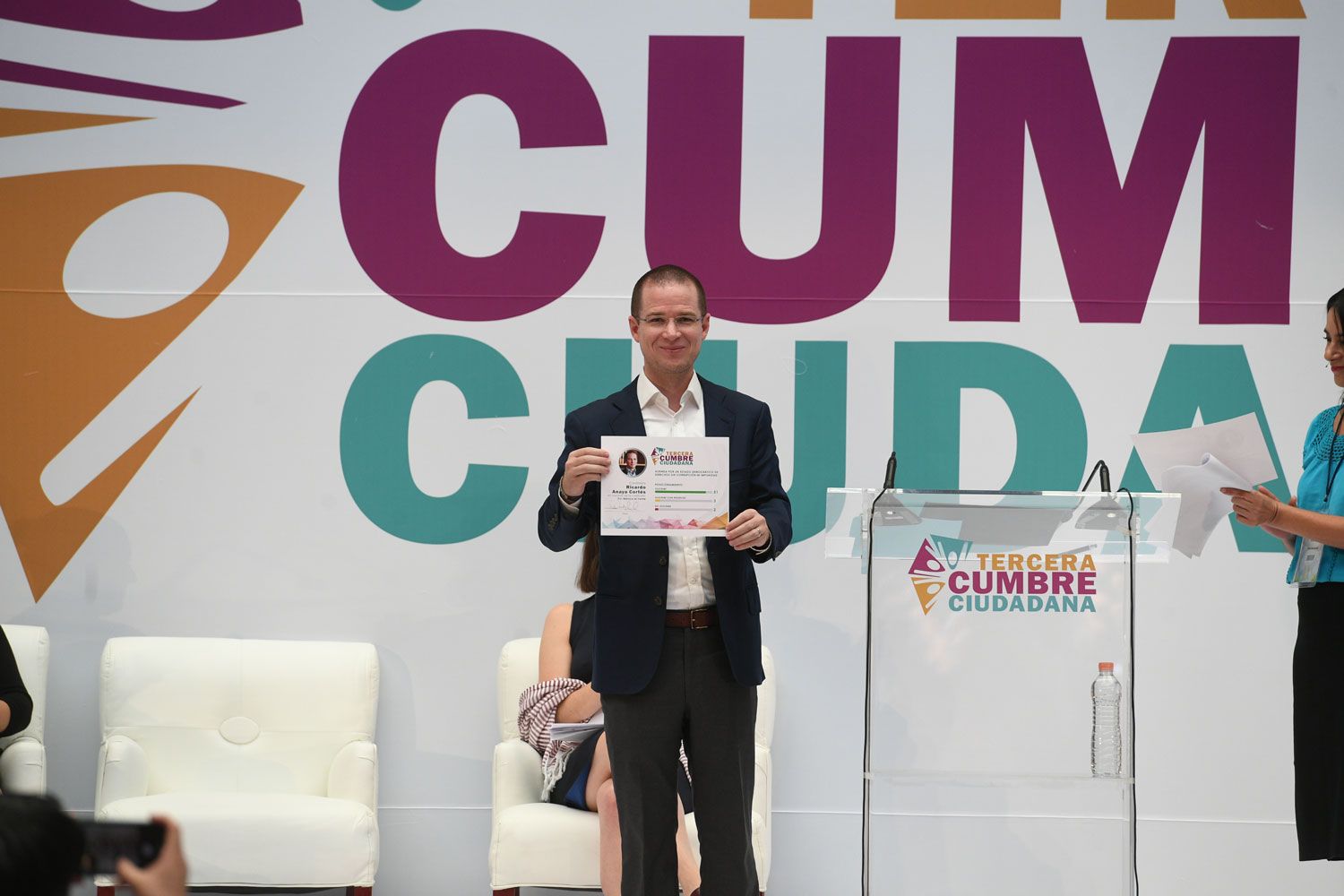 “Creo en el papel determinante que juega la sociedad civil”, afirmó el candidato de la Coalición Por México al Frente a la Presidencia de la República, Ricardo Anaya Cortés, durante la Tercera Cumbre Ciudadana, en el Palacio de Minería.
