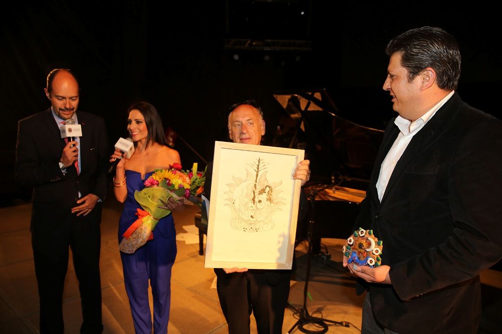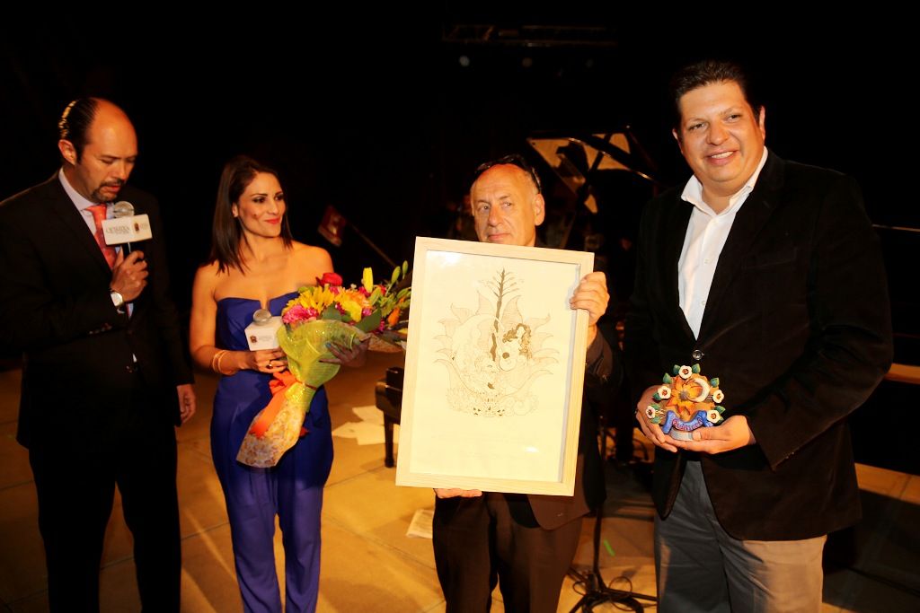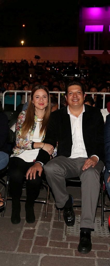 En la pantalla del foro de la Plaza Juárez apareció el alcalde David López Cárdenas para dar la bienvenida a los visitantes al Pueblo Mágico; enseguida, piso el escenario junto con su esposa, la titular del DIF local, Gabriela Bringas Abarca, para inaugurar formalmente el festival y con ello anunciar al maestro Nyman.