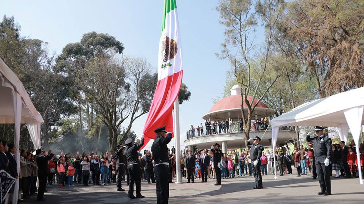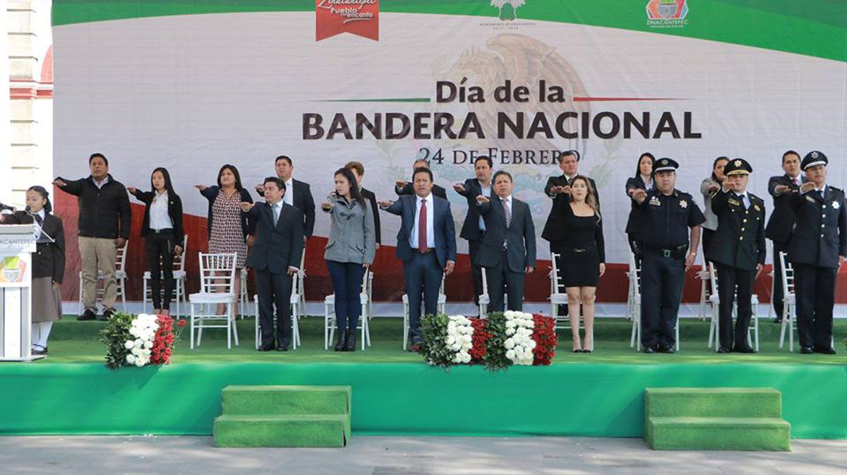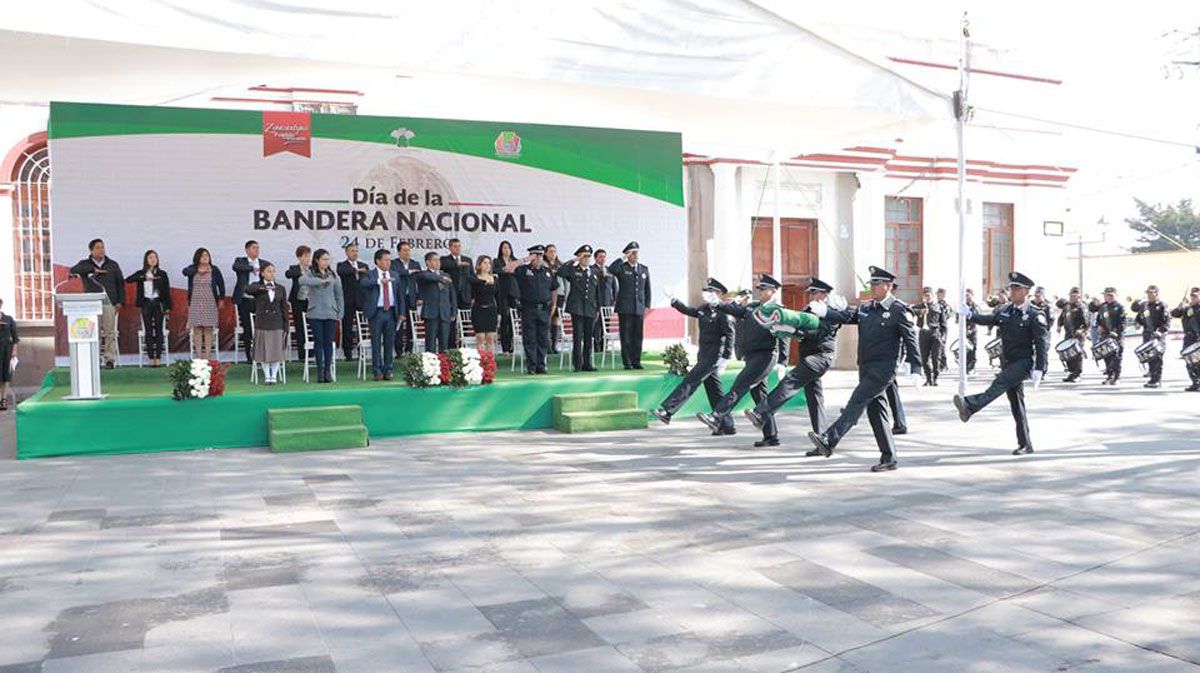 Zinacantepec, Méx.- “Nuestra bandera debe ser vista como un mosaico donde se funden culturas y costumbres de nuestro país, definiéndola como un símbolo de identidad y de pertenencia que une a todos los mexicanos” señaló el presidente municipal de Zinacantepec, durante la ceremonia conmemorativa del Día de la Bandera.