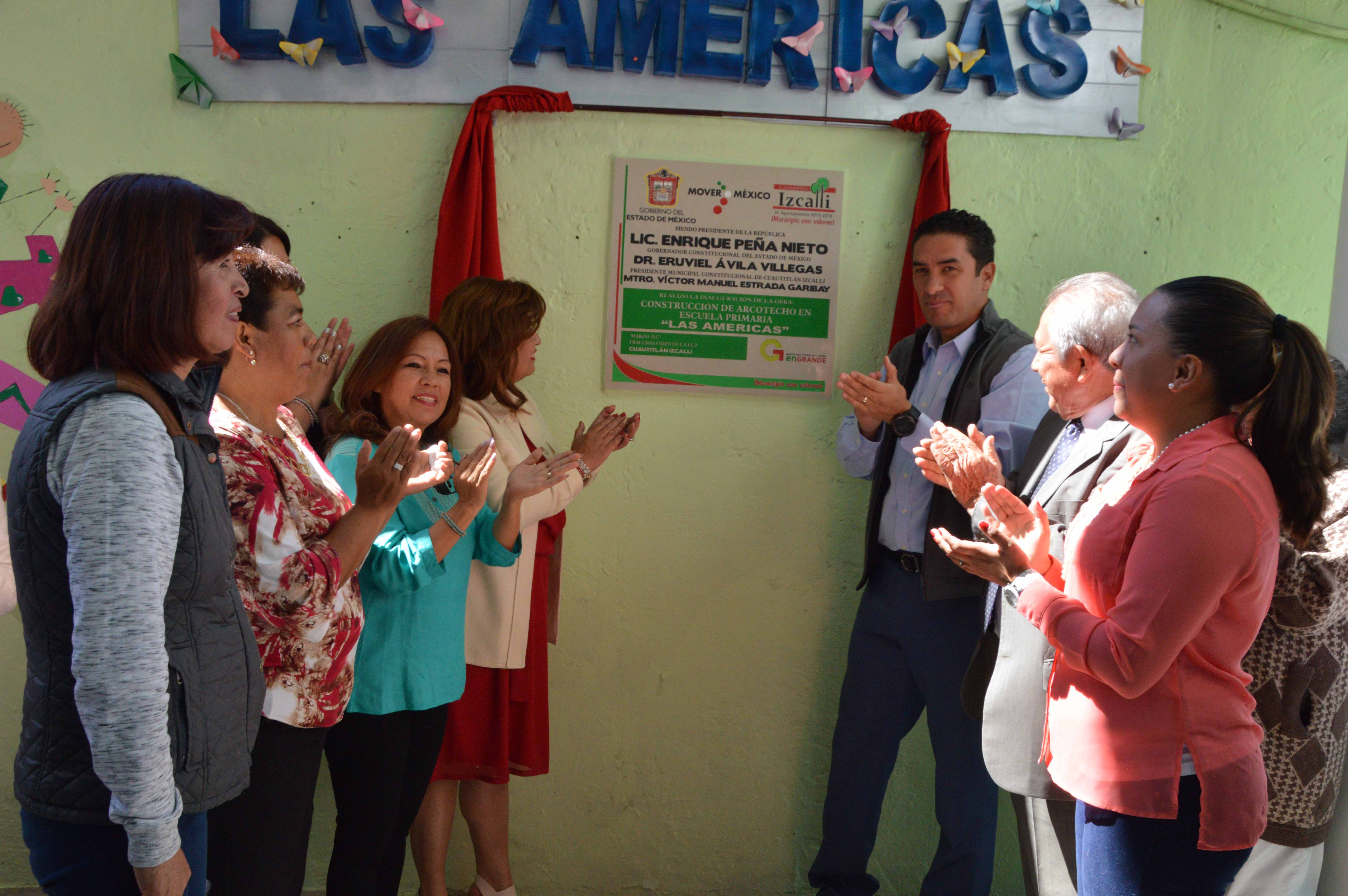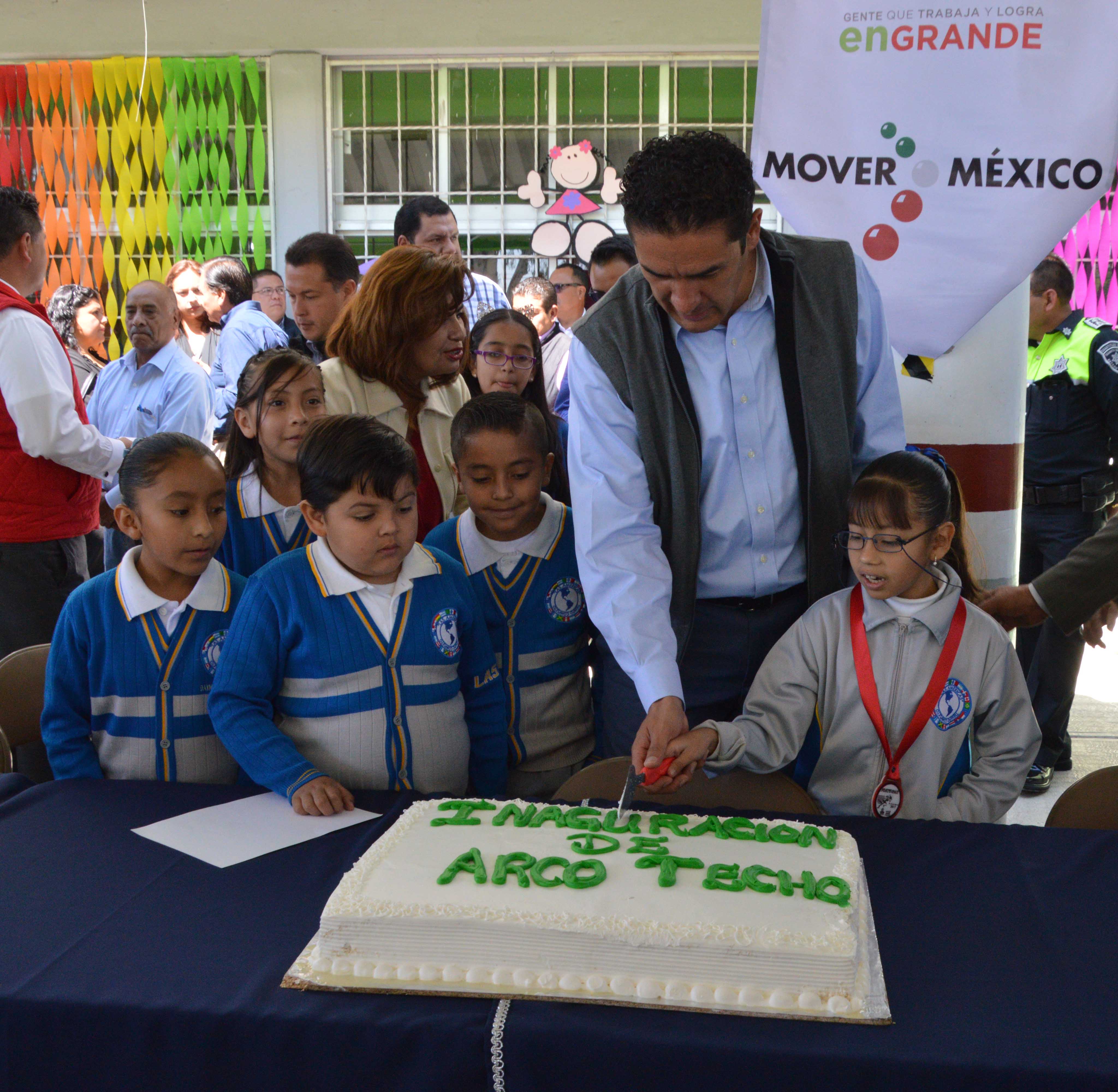 Aquí el Alcalde destacó que más de 8 millones de pesos se invierten en la construcción del comedor escolar y obras complementarias en la primaria “Lázaro Cárdenas”, en San Mateo Ixtacalco; el arcotecho, hoy inaugurado, en la primaria “Las Américas”; la techumbre en Jardín de Niños “Tihui”, en Valle de la Hacienda; pavimentación en calle “Albañiles”, en San Mateo; y colocación de concreto hidráulico de 15 centímetros de espesor en las calles “Cedros” y “Narciso Mendoza”, en San Mateo.
