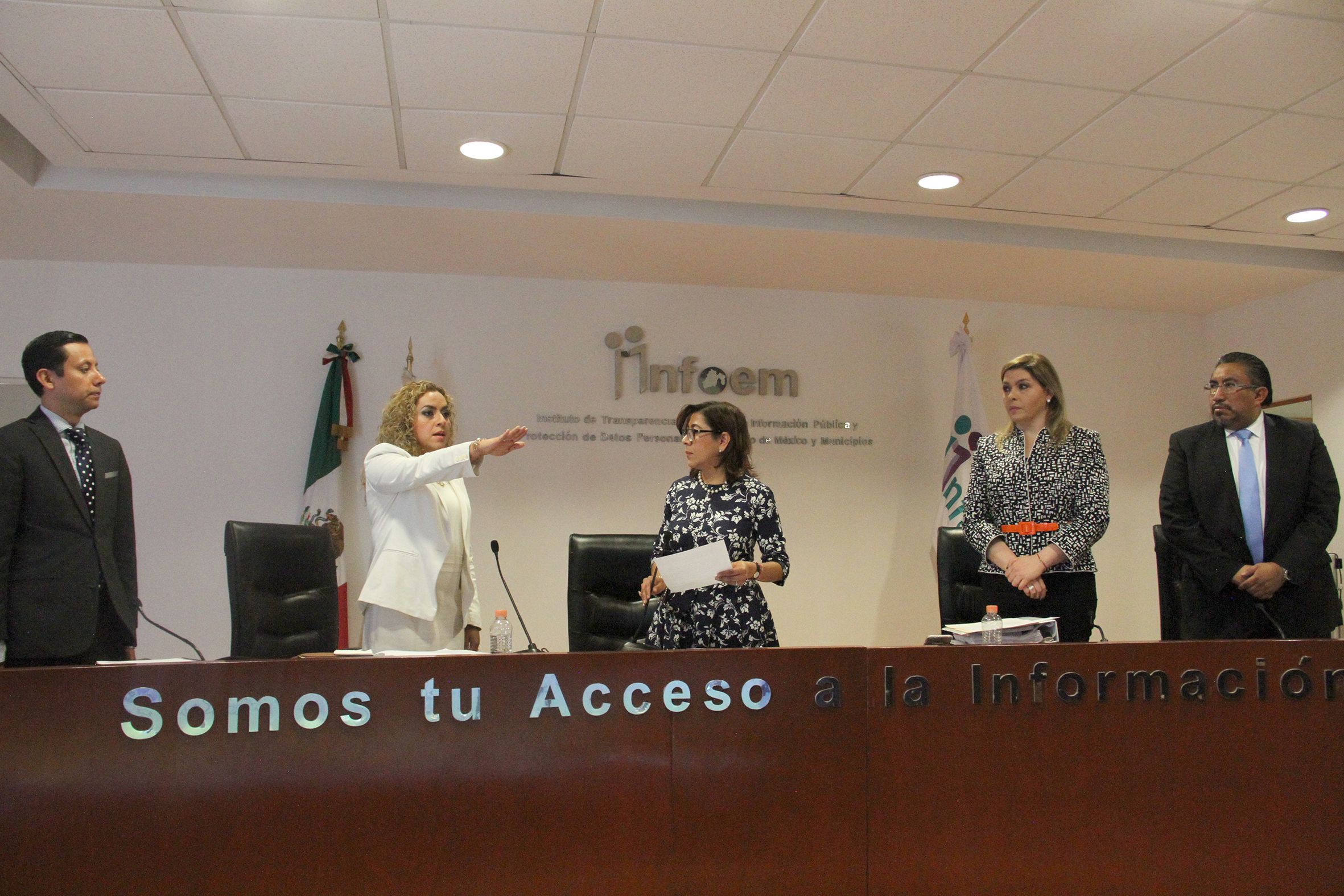 Durante la 4ª sesión extraordinaria del Pleno del Instituto de Transparencia, Acceso a la Información Pública y Protección de Datos Personales del Estado de México y Municipios (Infoem), de conformidad con los plazos previstos en la legislación local de la materia, la Comisionada Zulema Martínez Sánchez asumió la Presidencia de este órgano garante, luego de la realización del respectivo procedimiento electoral, en el cual emitieron su voto las Comisionadas Eva Abaid Yapur y Josefina Román Vergara y los Comisionados José Guadalupe Luna Hernández y Javier Martínez Cruz.